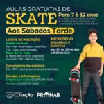As aulas de Skate acontecerão na Pista de Skate, também aos sábados, ao lado do Centro da Juventude Lauriberto José Reyes, com duração total de 6 meses. São apenas 20 vagas disponíveis para crianças de 7 à 12 anos.